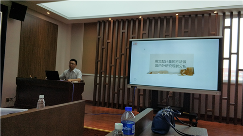2018年7月14日下午,ty8天游平台登录全体教师在校图书馆四楼启智学术交流空间参加了研究方法培训。图书馆王贵海老师做了题为“利用文献计量法做国内外研究现状分析”的讲座。