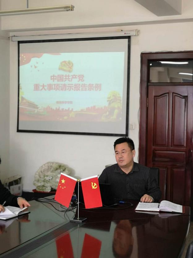 2019年3月15日,ty8天游平台登录全体教师在田家炳208室在党总支书记田铁杰的带领下,对《中国共产党重大事项请示报告条例》进行认真学习。学院例会后,田铁杰书记对条例进行了重点讲解,指出请示报告制度是我们党的一项重要政治纪律、组织纪律、工作纪律,是执行民主集中制的有效工作机制,对于坚决维护习近平总书记中央的核心、全党的核心地位,坚决维护党中央权威和集中统一领导,保证全党团结统一和行动一致,具有重要意义。