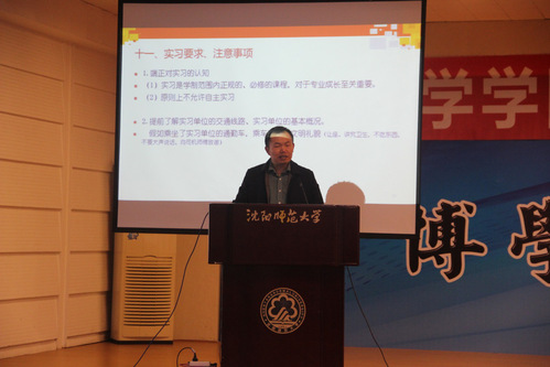 在为同学们介绍了各个实习单位的基本概况后,高军副院长重点给同学们讲解了实习的相关要求和注意事项,强调要转变对实习的认知,要以积极、认真、负责的态度,出色地完成实习单位安排的工作;在请假方面,需实事求是,实行严格的请假制度,履行规范的请假手续;杜绝迟到早退等不良现象。除此之外,高军副院长还特别对角色转变、着装要求、关心爱护中小学生、个人安全等问题进行了强调。