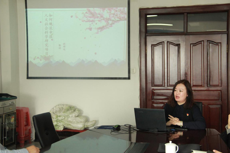 随后,郑志国副处长、郭玥老师、周功老师分别进行了具体工作的指导。郑志国副处长从咨政建议、科技平台、科技政策三个方面进行了介绍,详细梳理了国家、省、校各级的政策、历年情况、成果形式、培训指导等。郭玥老师以“如何规范申报人文社会科学研究项目”为题,分别从科研项目介绍、申报要点解析、国社与教育部、新增纵向项目四个方面进行了政策的解读和讲解,帮助老师们进一步拓展了科研申报的思路。周功老师重点介绍了省哲学社会科学奖评奖工作和横向科研工作,省哲学社会科学奖评奖工作方面分别介绍了基本情况、评奖机制、评奖要求及说明、其他人文社科类评奖,横向课题方面则重点回答了“什么是横向科研项目”、“为什么要发展横向科研项目”、“如何签订横向科研项目”三个老师们普遍关心的问题。