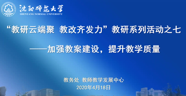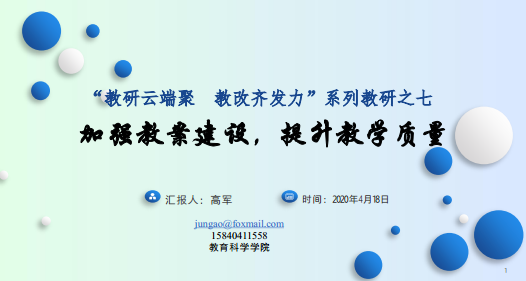 由教务处和教师教学发展中心举办的“教研云端聚 教改齐发力”教研系列活动的第七期于2020年4月18日上午10点在ZOOM网络会议平台举行。本期活动由我院副院长高军担任主讲嘉宾,他报告的主题是:加强教案建设,提高教学质量。