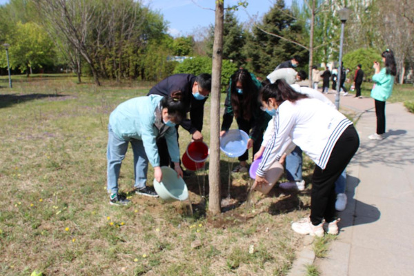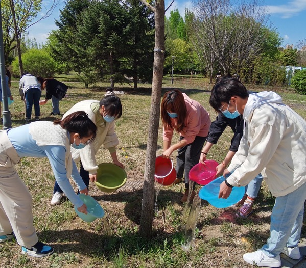 为弘扬中华民族优秀的传统美德,培养大学生的劳动素养,提升大学生“劳动最美”意识,2022年5月1日上午9点,ty8天游平台登录党委组织学院部分学生开展“我为春天出份力”主题劳动教育活动。三十多名本科生和研究生自带浇水用具,与疫情期间留守校园的领导老师一道,为田家炳教育书院前的两排银杏树和田家炳先生手植松树浇水。师生接力互助,团结合作,为久旱中的银杏树和松树浇足了水,为银杏树和松树在春天里焕发蓬勃生机和茁壮成长提供了充足的水份。在劳动过程中,我院领导老师还为同学们讲解了以实际行动建设美丽沈师,以优美校园环境提升育人效果的意义。