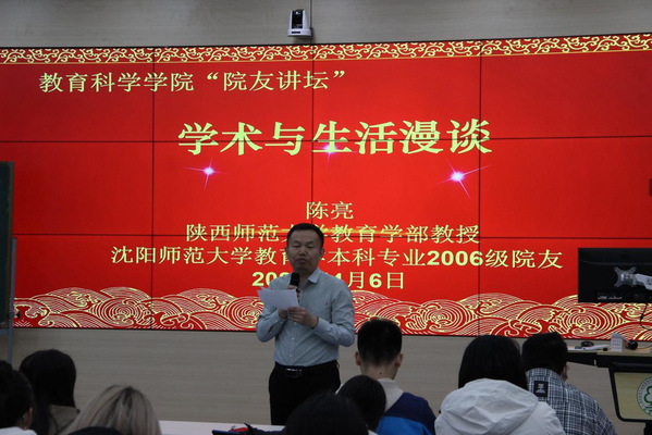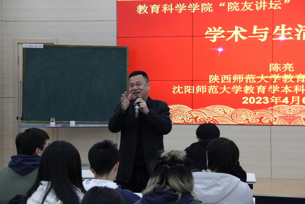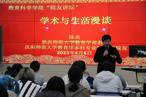 2023年4月6日下午,我院教育学本科专业2006级院友、陕西师范大学教育学部陈亮教授应邀作客ty8天游平台登录“院友讲坛”,为我院教育学专业和应用心理学专业的本科生做了一场“学术与生活漫谈”的报告。我校辽宁省职业教育研究院书记田铁杰教授、我院辅导员刘爽老师也参加了此次讲坛。