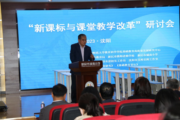 2023年5月6-7日,由沈阳师范大学ty8天游平台登录基础教育高质量发展研究中心主办,新民市教育局、新民市教师进修学校、沈阳市曲宝印名优校长工作坊、沈阳市吴师名师工作室、新民市城南小学承办,《中小学教学研究》《基础教育论坛》杂志协办的基础教育高质量发展研究中心第二届学术研讨会暨“新课标与课堂教学改革”研讨会隆重举行。研讨会采取线上线下融合方式召开,为现场及云端与会者呈现了学术盛宴。