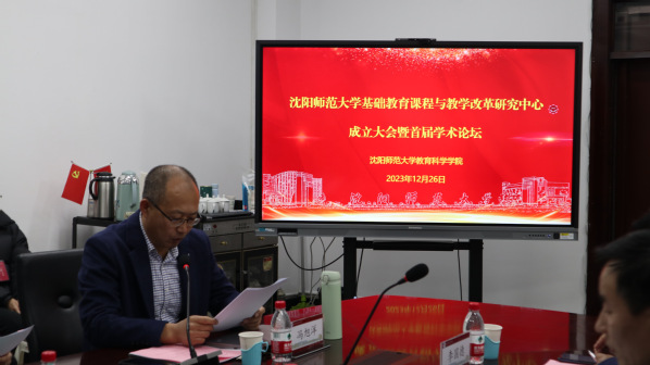 2023年12月26日,沈阳师范大学基础教育课程与教学改革研究中心成立暨首届学术论坛在田家炳教育书院208召开。论坛由沈阳师范大学ty8天游平台登录院长朴雪涛教授主持。辽宁大学原党委书记周浩波教授,辽宁教育学院院长孟宪彬教授,《辽宁教育》原主编李阳老师,沈阳师范大学副校长赵礼强教授、科研处李国德处长、郭玥副处长,ty8天游平台登录高军副院长、王江洋副院长、冯旭洋副教授、赵爽副教授、宋国才老师、朴汇燕老师出席论坛。教育部长江学者特聘教授、华中师范大学郭元祥教授以视频方式参与了本次论坛。