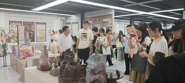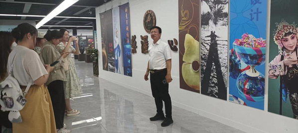 在本次教育见习活动的第二个环节,杨克院长带领我院师生参观了该校非常有特色的“艺汇中心”,亲自为我院师生讲解了该艺汇中心收藏的新辽陶陶艺、京剧传承、帝墟牛河梁、名家摄影、书画、视觉设计、服装设计、老字号品牌设计、非遗传承技艺、项目成果以及文创精品等创新实践成果。该艺汇中心的展品大多数都是该校师生的文创作品,十分精美和富有创意,既有历史和文化方面的作品,也有目前引领市场发展的商业创意作品。