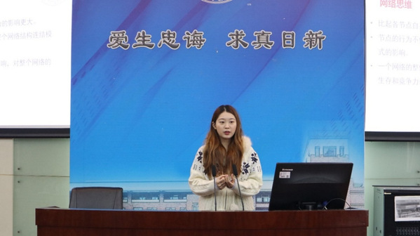 第二场报告会由吴昊同学主持。葛文萱以同学《用UCINET软件进行社会网络分析》为题做主旨报告。该报告首先对网络和网络思维进行详细的介绍,接下来通过一种现象、三度影响、四分维度和六度分隔等步骤,系统阐述了社会网络的概念与定义。最后介绍了从数据收集到运用UCINET软件对社会网络进行深入分析的详细方法。