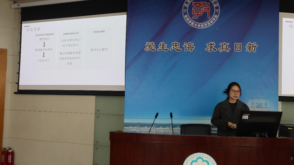 第一位报告人王华利同学以《指向深度教学的高校教师数字胜任力特征组态研究》为题报告。本次报告指向深度教学的教师数字胜任力,结合AMO(能力-动机-机会)理论构建高校教师数字胜任力水平影响因素框架,并采用fsQCA方法进行数据分析,最终得出6条高水平特征组态,并归纳为“组织支持的教学思维牵引型”“能力支持的教学角色强化型”“技术-组织协同的教学思维弥合型”和技术赋能的教学思维转化型”四类。据此提出四条对策建议:构建浸润式数字学习环境,帮助教师挖掘数字学习能力;深化个体-情境交互式协作,积淀教师数字化深度教学经验;依托数字教学效能感和角色认同,催化教师赋能学习者能力;启迪数字驯化教学思维,激发教师深度教学设计创造力。