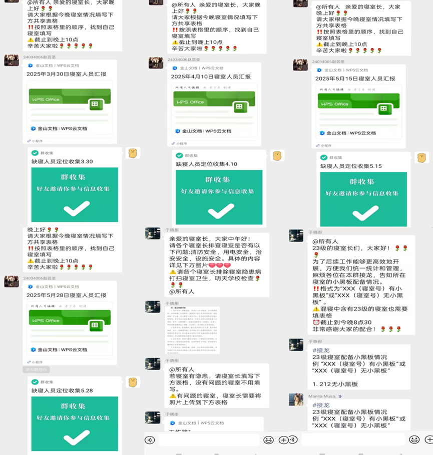 在人身安全保障方面,学院采用了创新且有效的管理方式。一方面,通过在微信群每日统计离校人员信息,实时掌握学生的出行动态;另一方面,结合每周的定时查寝,精准把握学生的归寝情况。对于晚归或未归的同学,生活权益部干事会进行详细记录确认其安全状况。这种细致入微的关怀,让同学们切实感受到学院的重视,也为学生的人身安全加上了一把坚实的安全”。