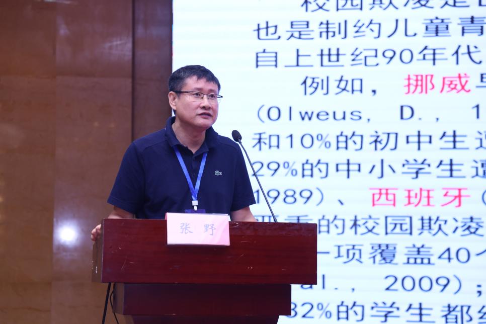 会上,张野教授作了题为《欺凌治理视域下的中小学生校园排斥》的主旨报告。报告精准地抓住了当代中小学生在现实与网络双重环境下人际交往模式复杂化的新特点,从理论与实证层面系统剖析了校园排斥这一隐性欺凌行为的内在结构、动态影响机制及其与青少年心理健康的深层内在联系。报告不仅揭示了校园排斥对学生造成的潜在伤害,更提出了具有前瞻性和可操作性的防治策略,旨在为有效保护中小学生免遭校园负性人际交往的伤害、降低心理健康问题风险提供坚实的理论支持与科学的实践指导。报告内容深刻,视角新颖,引发了与会专家学者的高度关注和热烈反响,并就新型欺凌行为的界定、识别与干预等问题进行了广泛而深入的讨论。